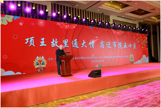 2024年2月4日,農(nóng)歷正月十五(元宵節(jié)),我院舉辦宿遷市建筑設(shè)計(jì)研究院五十周年慶典活動。湖濱新區(qū)黨工委副書記、管委會主任陳磊出席活動并致辭,活動由我院董事長兼院長胡立軍主持。